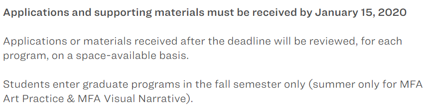 滚动审核,但2020年的申请要求在1月15日之前收到申请和所有材料。
