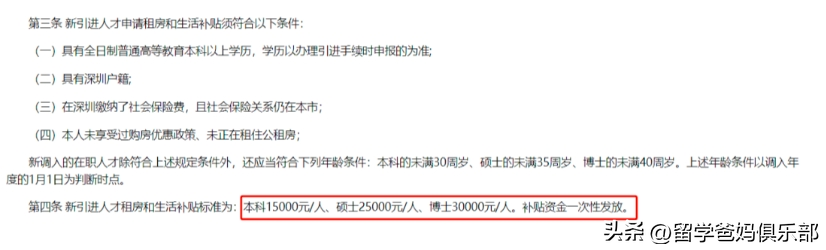深圳从2010年开始推出了引进高技术人才的”孔雀计划”项目,对于纳入“孔雀计划”的海外高层人才可享受80-150万的奖励补贴,但“孔雀计划”比较严苛,如果不是至少博士毕业应该是没有可能的。而各位本科生和硕士有其他的人才补贴。本科生可以领取2万,硕士可领3万,分两年等额发放,但是申请人需要实在世界top300的高校毕业的并且申请人需要毕业不满两年,毕业时间以毕业证书落款时间为准。在住房补贴方面,本科可补贴1.5万,硕士可补贴2.5万,博士补贴3万,并且各位同学还可以申请留学生公寓。