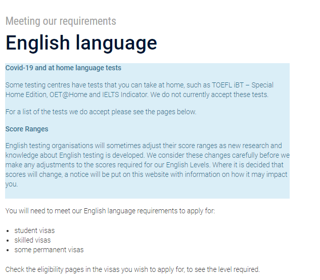 转载说明:文章《澳洲留学签证对英语有什么要求,澳大利亚各类签证的英语要求汇总分享》由【岸帮留学】原创发布(部分转载内容均有注明出处,如有侵权请告知),转载请注明文章来源。