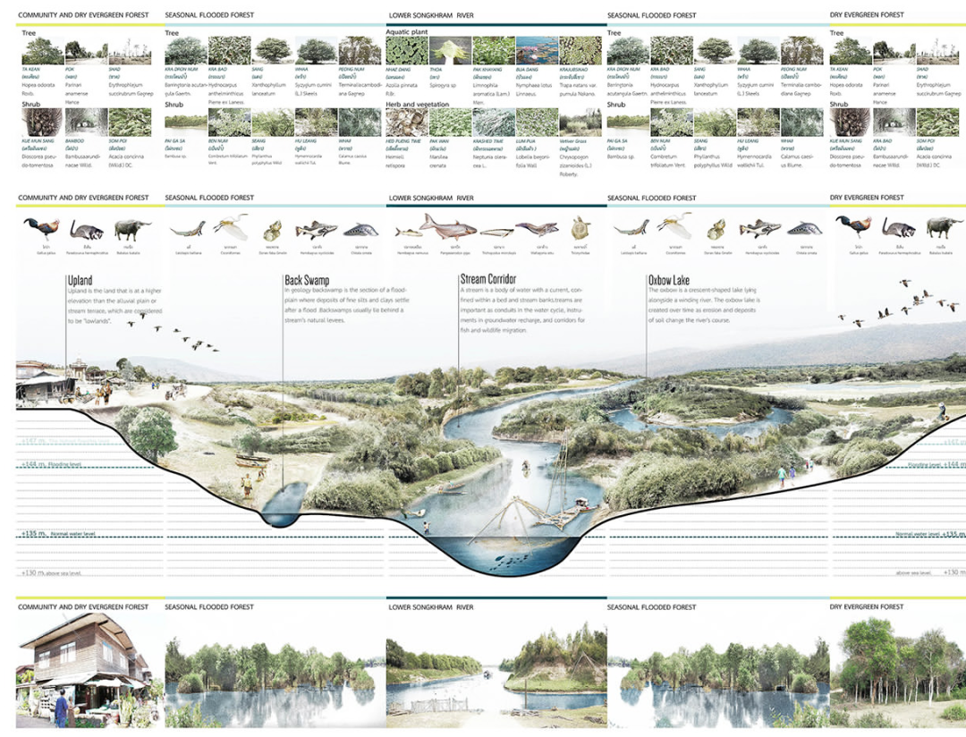 生态系统、生态修复理论在景观作品集项目中的应用示意©Panithan Kasinphila