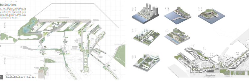 首先,作品集中的项目需要针对场地的周边交通、建筑、生态、天气、历史文化等状况进行调研分析,通过分析,将会提炼出场地的特点与存在的问题。