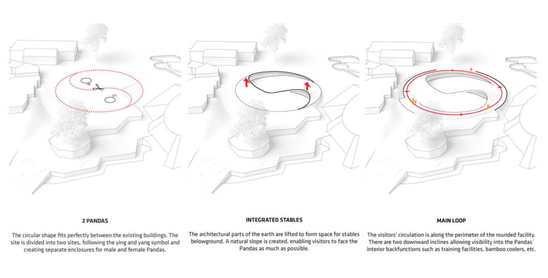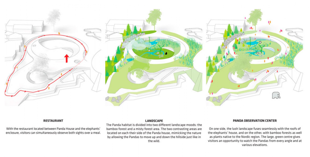 设计理念与造型推导过程示意(BIG作品:丹麦哥本哈根动物园熊猫馆)
