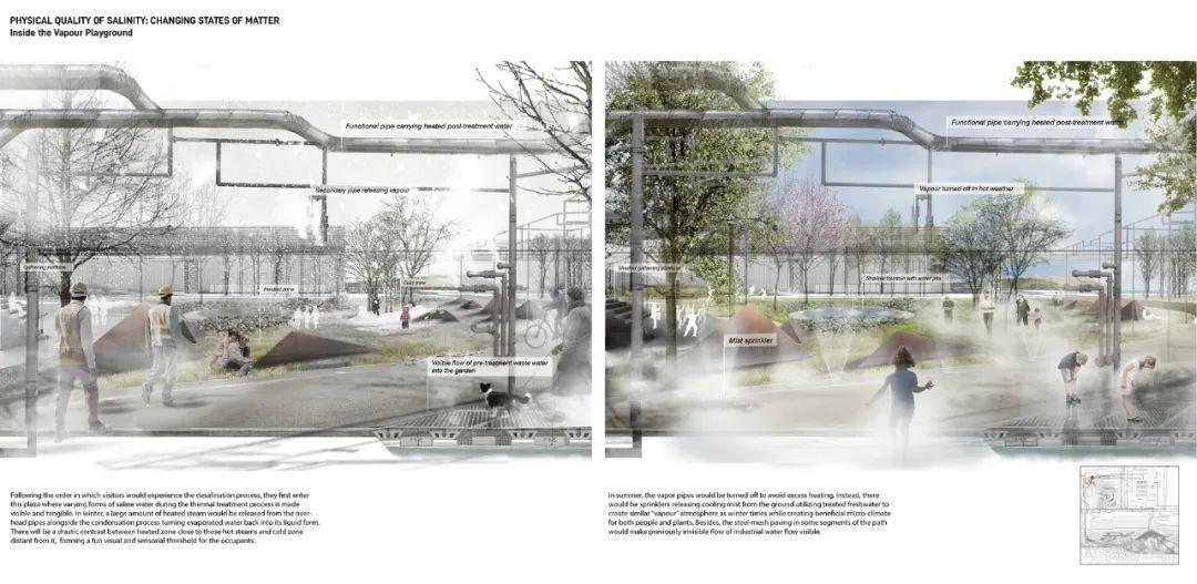 将热处理后的盐水蒸气在蒸气游乐空间中进行利用(蒸气可以循环利用)©Youzi Xu,Ziying Huang
