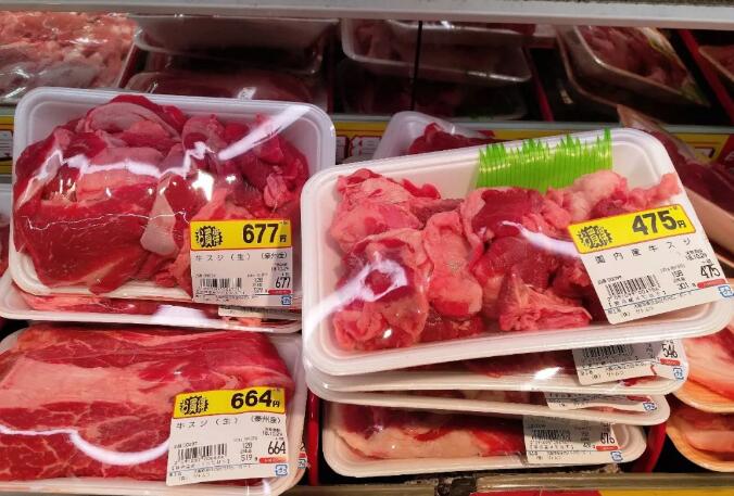 日本本地产的牛肉很贵。好的和牛在300元一斤,但一般的本地牛肉都在人民币90元左右一斤。