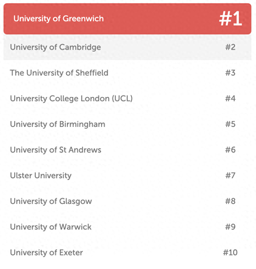 可以说是英国院校的“大众点评”,也被称为最受学生欢迎的大学排名。