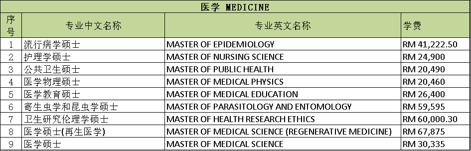 下面我们以马来西亚第一的大学马来亚大学为例,看一下它的学费情况: