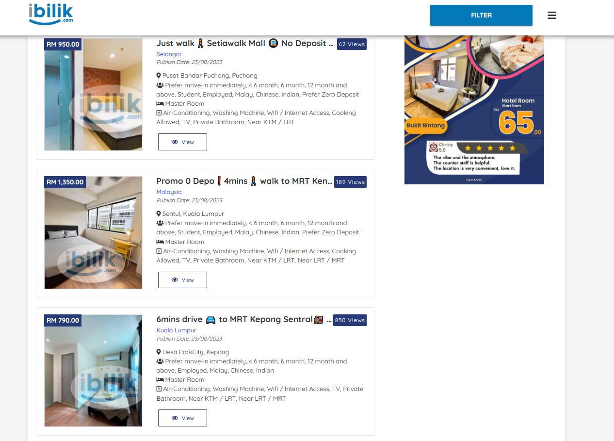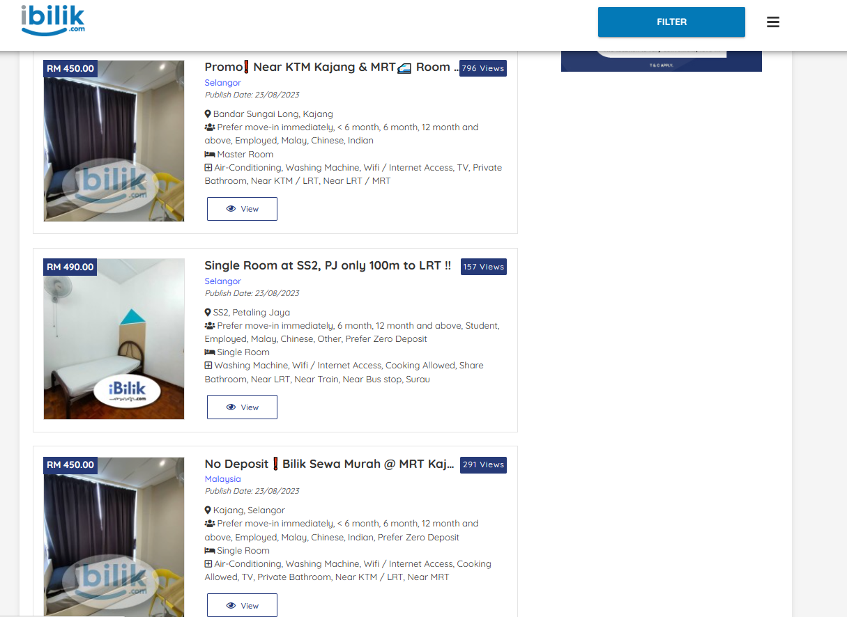 如果是最普通的低级小区或者排屋一类,800RM/月以下就能租到,有的甚至500都不到。不过质量就见仁见智了。