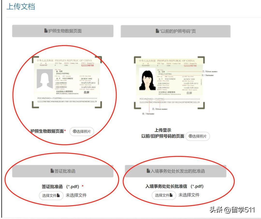 第五步:检索成功,上传文档,分别上传护照资料页,eval 和Approval Letter。并填写信息,标星的是必填的。填好后,点下一步。