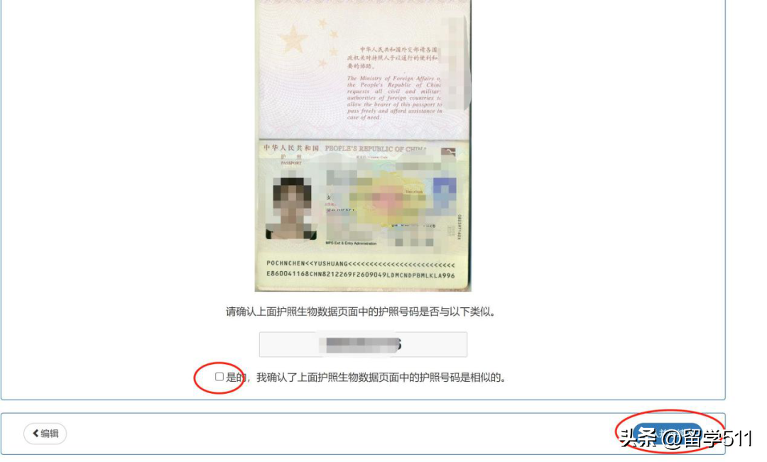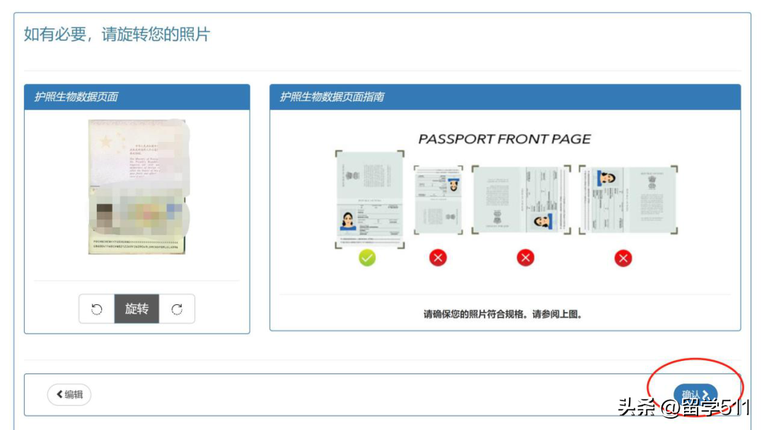 照片验证可接受,检查护照照片是否合适,最后点确认。(如果照片验证不可以,返回上一步再编辑过后再进行下一步)