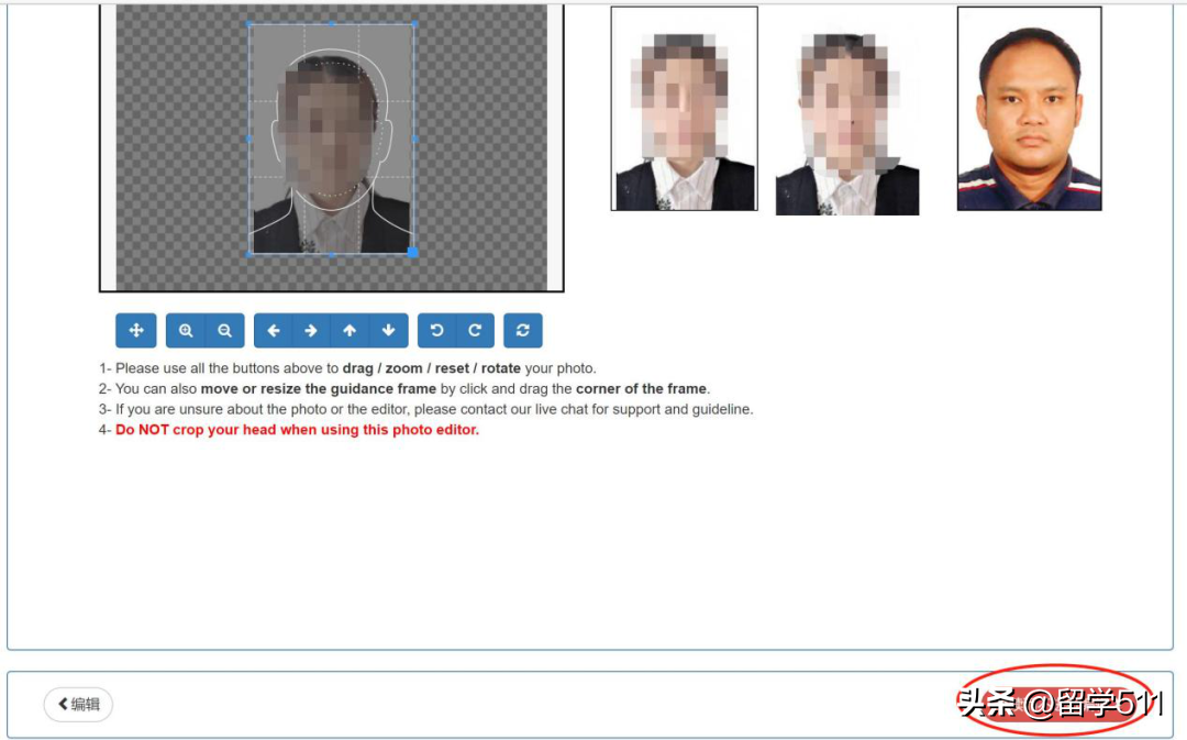 按参考照片样板,编辑照片比例,如果照片标准,直接继续而不进行编辑。