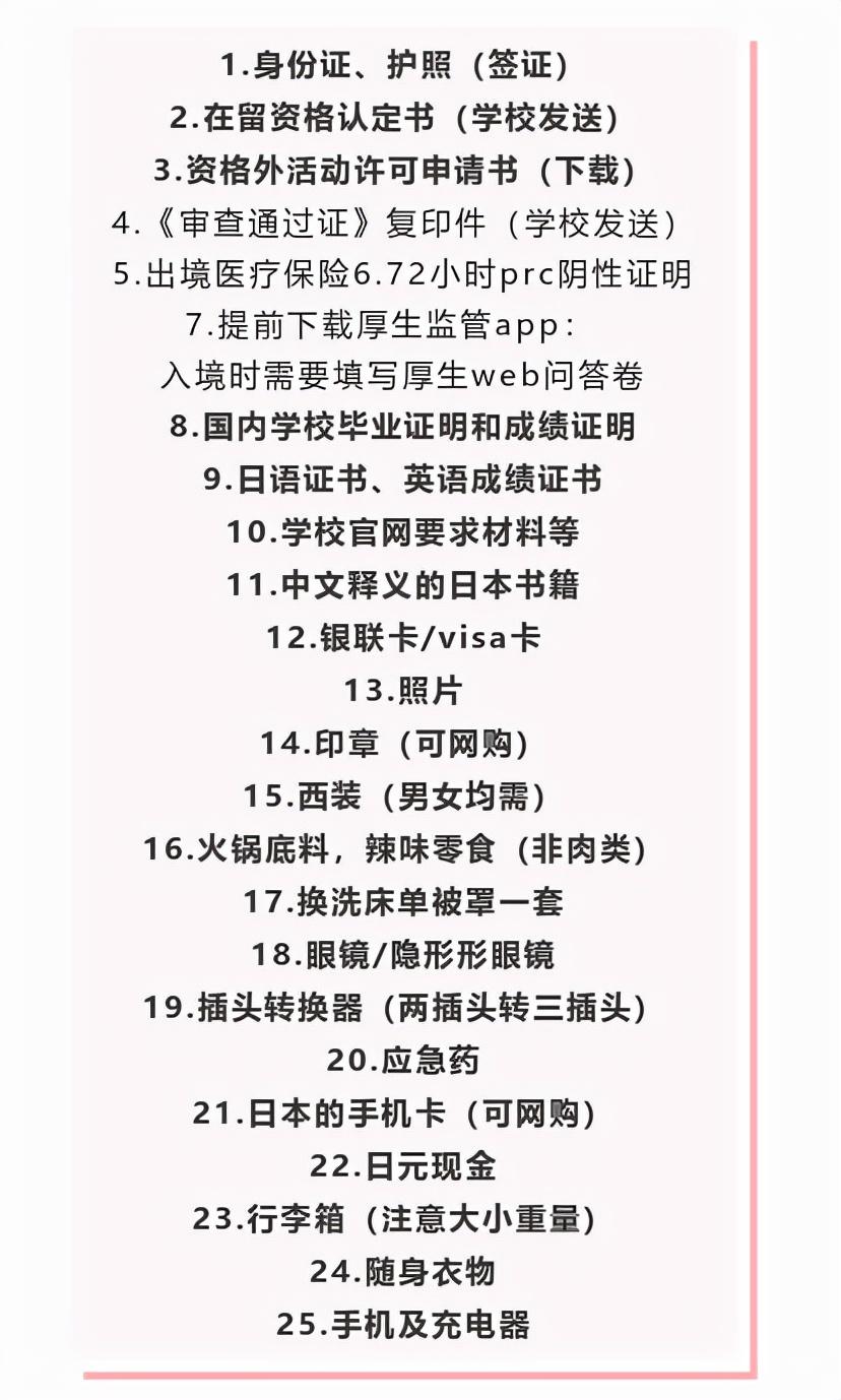 以上就是为即将赴日的小伙伴们的行李必备物品清单,希望对即将赴日的同学们有用!
