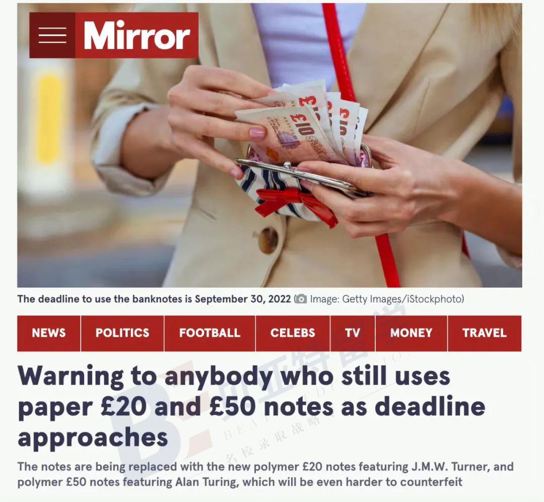 也就是说,在今年9月30日之后,如果你仍使用旧版的20 镑和50镑纸币付账,商家将有权拒绝接收。新版20镑和50镑纸币则以艺术家JMW Turner和科学家Alan Turing为主题设计的版本,而且都会是塑料钞票。