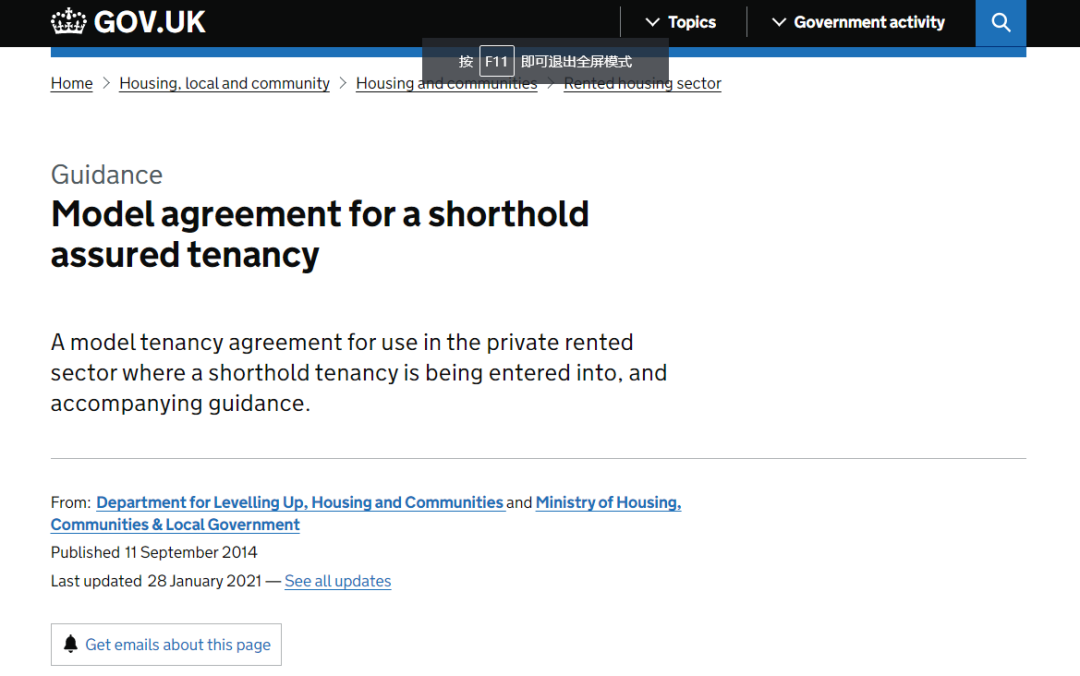 英国政府官网上有标准租房合同模板,大家可参考一下:
