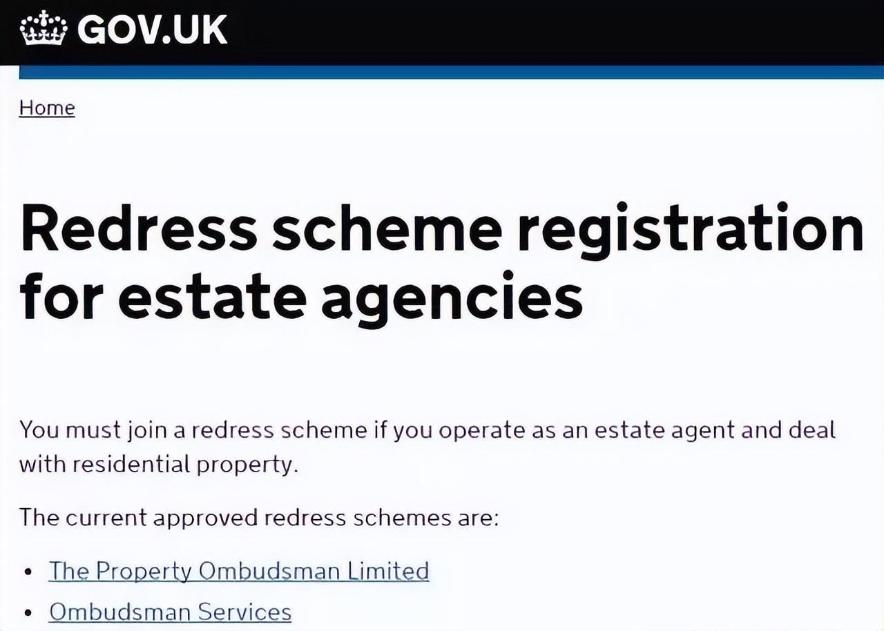 在英国,根据法律规定,如果你要从事房产中介生意,必须是redress scheme的成员。政府网在的截图如下: