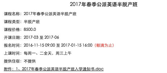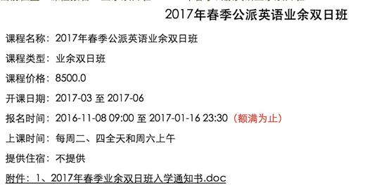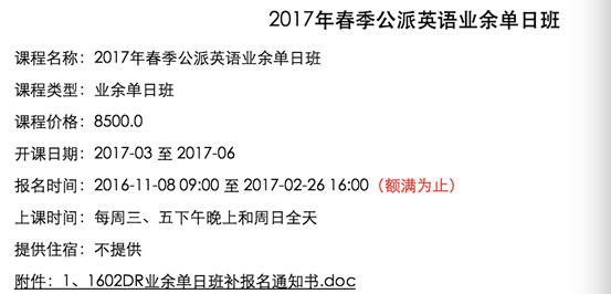 以2017年春季班举例,具体上课时间可以参考以下表格安排。