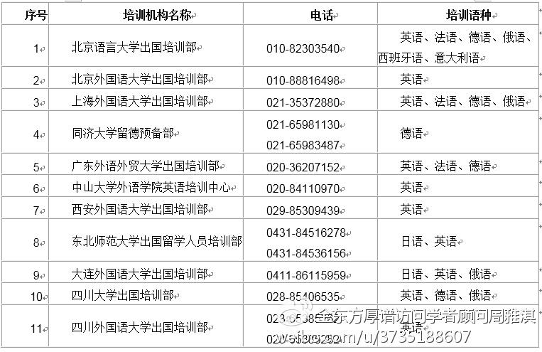 【教育部指定出国留学人员培训部培训语种及联系电话】