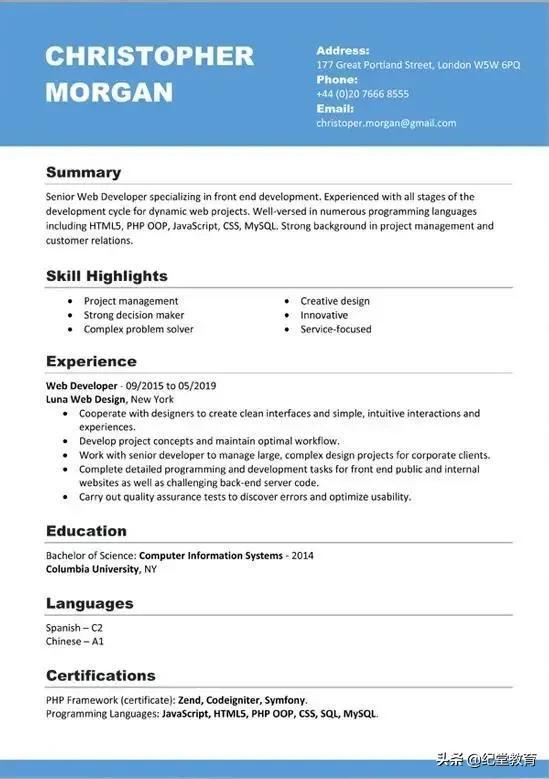 为了进一步方便大家理解,纪堂君在分享一下个人简历的真实模板,大概就是长这样的。
