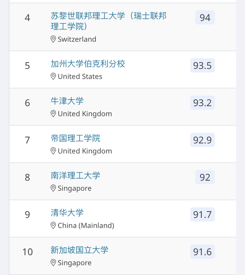 在最新的QS排行榜中,该专业表现最突出的英国大学分别是剑桥大学(位居第3)、帝国理工学院(位居第7)、牛津大学(并列第7)。