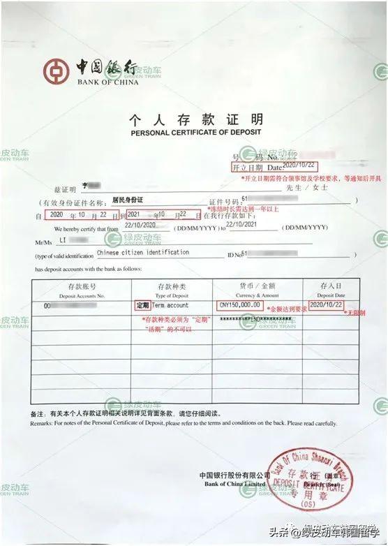 存款证明是银行所开具的你持有存款的证明材料。韩国大学一般要求这笔存款在本人或父母卡内冻结6~12个月,不同学校要求不同。