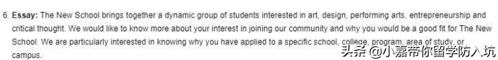 大致就是希望学生描述一下自己为什么想申请The New School(Parsons包含在内),为什么觉得自己适合申请。还有为什么申请Parsons、这个专业以及这个program等。