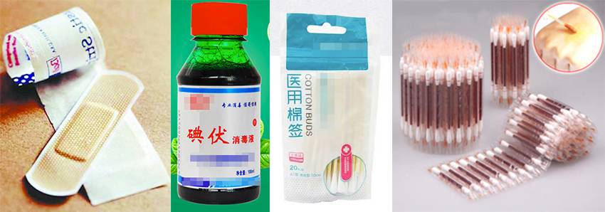 必备的外伤处理:创可贴、棉签和碘伏,或者还有更方便的碘伏棉签: