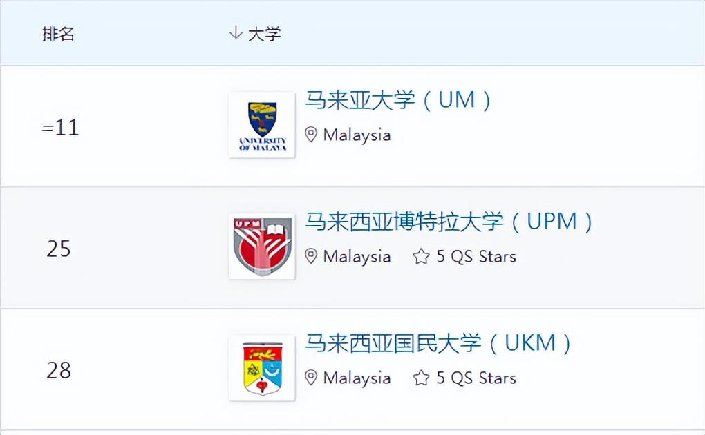 马来西亚的学校发挥一直很稳定,在今年的TOP50中,马来西亚有6所学校上榜,分别是与上海交大并列的马来亚大学(11名),马来西亚博特拉大学(25名),马来西亚国民大学(28名,稳稳留学合作院校,点击校名查看简章),马来西亚理科大学(35名,稳稳留学合作院校,点击校名查看简章),马来西亚工艺大学(37名),泰莱大学(41名)。