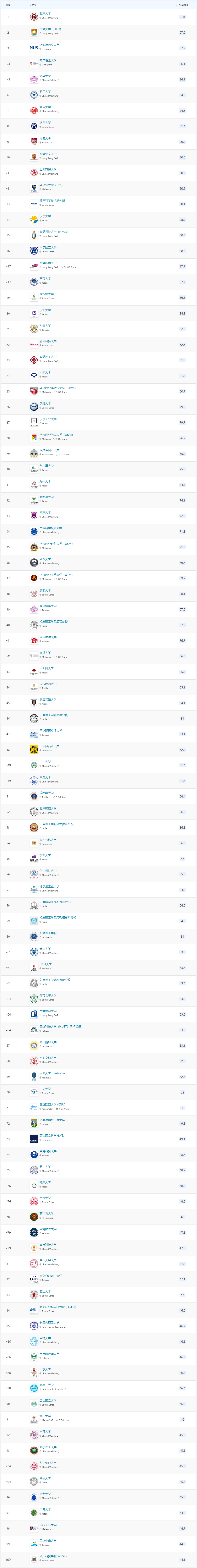 本次排名包含来自亚洲18个地区的856所高等院校,是QS有史以来对亚洲地区高等教育系统进行的规模最大的比较评估研究成果。
