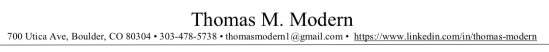这部分内容一定要清晰地写出自己的姓名、电话、邮箱、地址等,通常会放在页眉处。