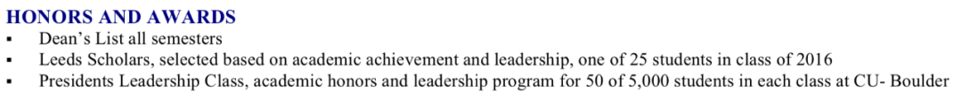 Honors & Awards 获奖经历:奖学金、发表的论文、竞赛获奖等。