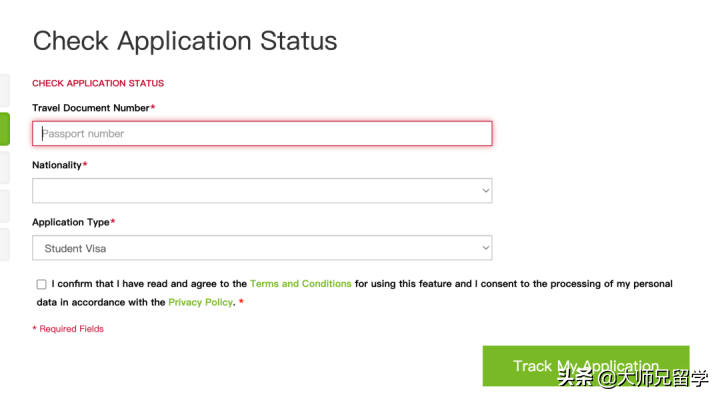 提交资料以后,可以在EMGS系统中查询申请进度,使用学生护照号、国籍和签证类别查询。