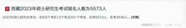 据报道,西藏2023年硕士研究生考试应考5573,实考3649人。第一门考试开考,缺考率即达到35%。