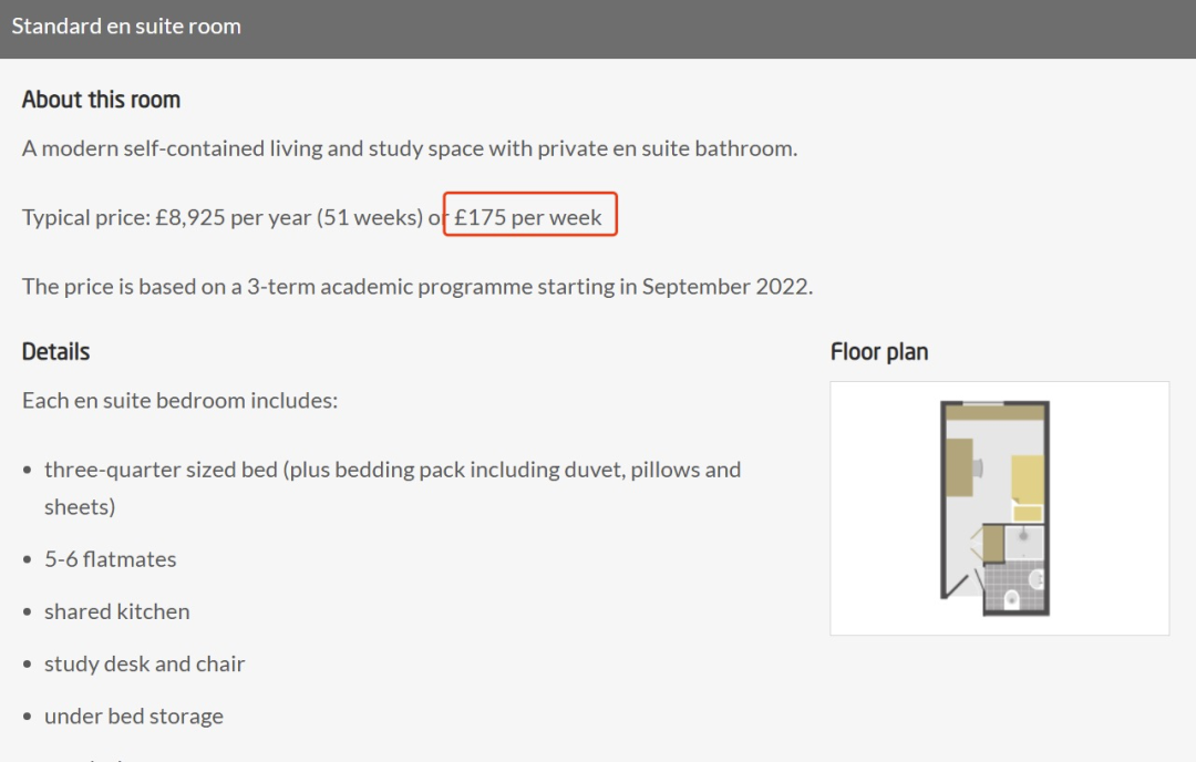 包括studio/ensuite/shared house几种类型,价格依次递减,但费用也都不低。