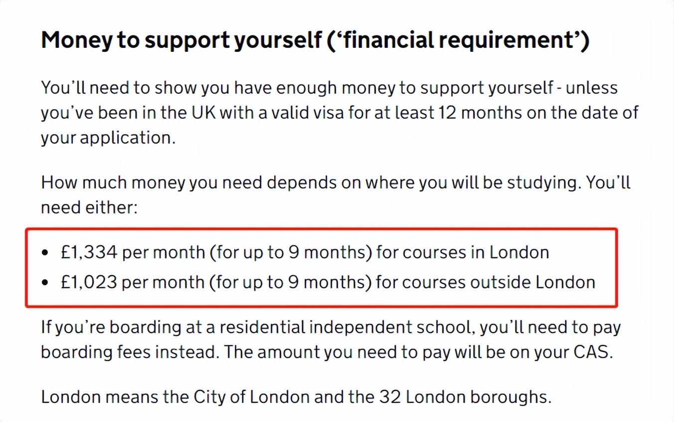 Tier 4学生签证的保证金在伦敦市内至少是1334镑一个月,伦敦外地区则为1023镑一个月。