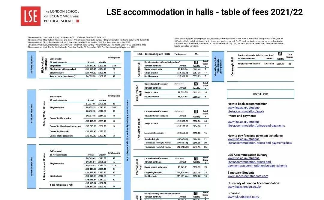伦敦地区留学生的平均住宿费为9878英镑/年左右;