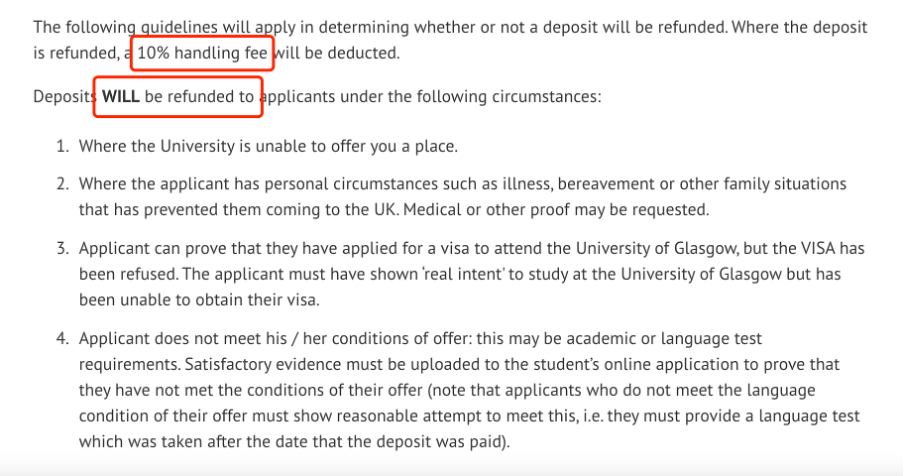 拿格拉斯哥大学举例:如果学生使用信用卡或借记卡付款,则可以在2 周内收到押金退款;如果学生通过银行卡转账付款,那么需要等待应收账款团队的处理,大概需要等待4-6周的时间才能收到退款。