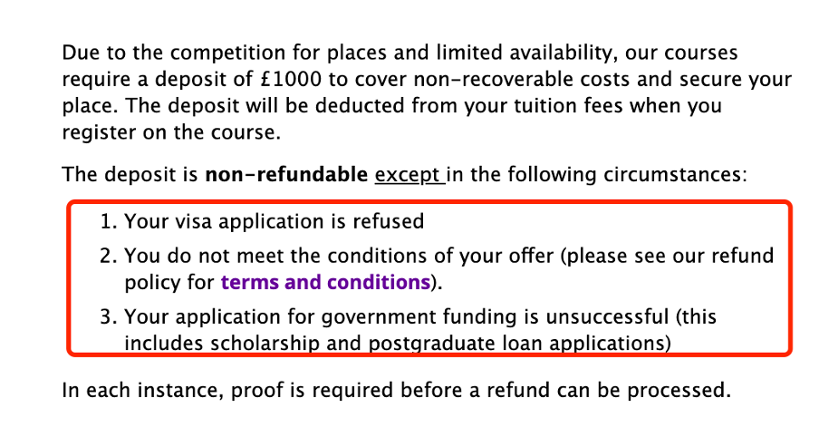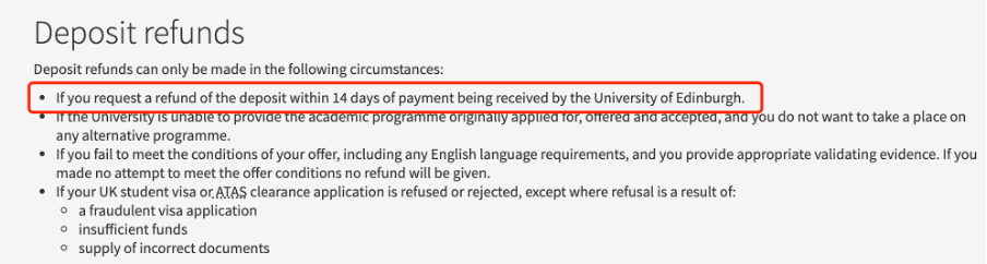 也有比较久的,比如谢菲尔德大学的退款时间则是90天内。