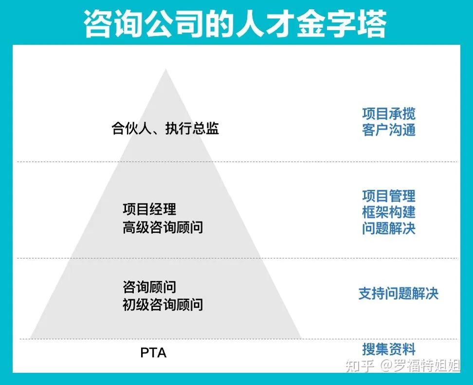 再说到咨询岗位的晋升,基本上呈金字塔结构,一层一层往上: