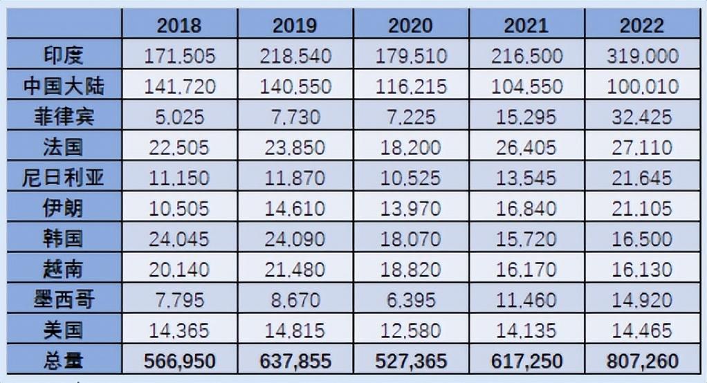 IRCC官网公布最新数据,截止至22年底,加拿大国际学生总量及TOP10生源国/地区