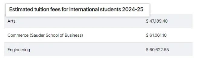 英属哥伦比亚大学(UBC)2024留学生学费最低47189加元,最高61061加元。已经是名校中最便宜的了。