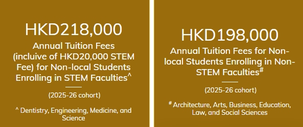非本地学生在港大修读非STEM本科学位课程的学费由18.2万港币上涨至198,000万港币,STEM专业的学费则暴涨至218,000港币。