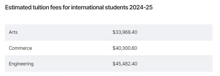 到2025年,学费的最低水平将介于44,670澳元至59,750澳元之间,具体取决于专业。攻读医学专业的留学生在2025年的学费预计将达到95,360澳元。