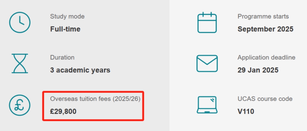 2025Fall,UCL公布的本科学费在£29,800-£43,500之间,医学专业更是一骑绝尘,每年费用高达£53,400!