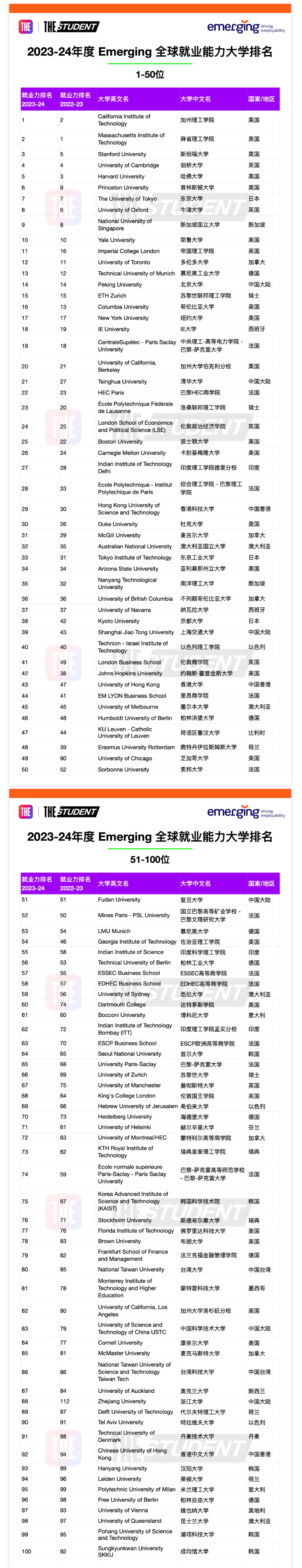近日泰晤士高等教育发布了2023-24年度全球就业能力大学排名(Global Employability University Ranking)。美国留学就业