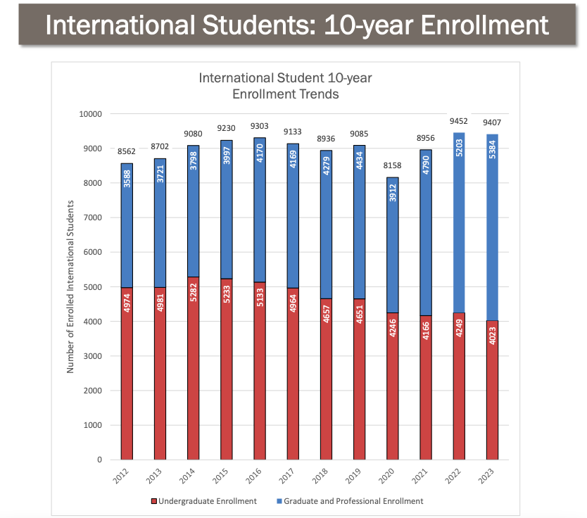 2023年,普渡大学中国留学生总人数为2249人,而印度学生则为2782人;自去年开始,印度学生已超越中国,成为普渡大学最大的海外生源地。