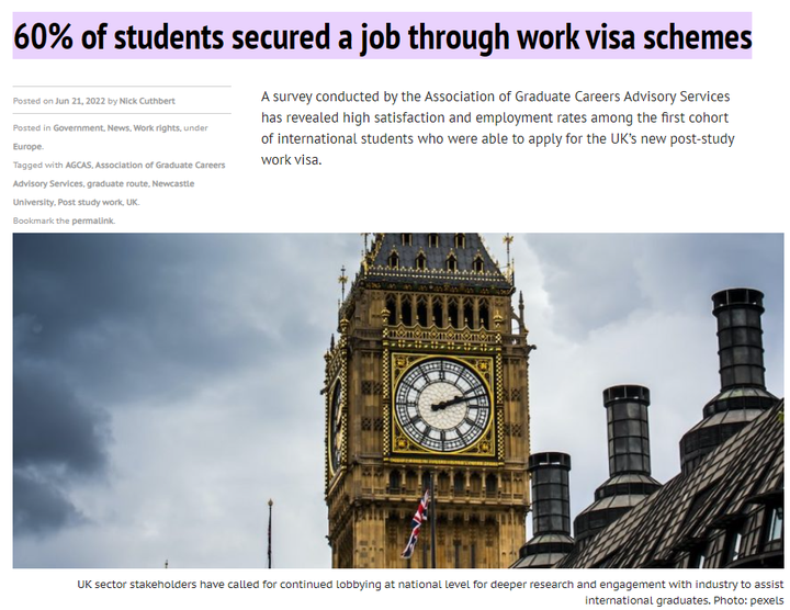 据《The pie News》的报道,持有首批pSW签证的国际学生,有60%的同学找到了全职工作,7%的同学找到了兼职工作。