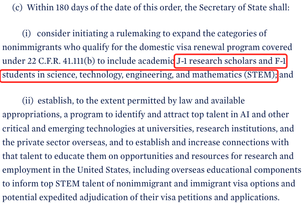 行政命令中写到:利用现有当局,通过现代化和简化签证标准、面试和审查,扩大在关键领域拥有专业知识的高技术移民和非移民在美国学习、居留和工作的能力。