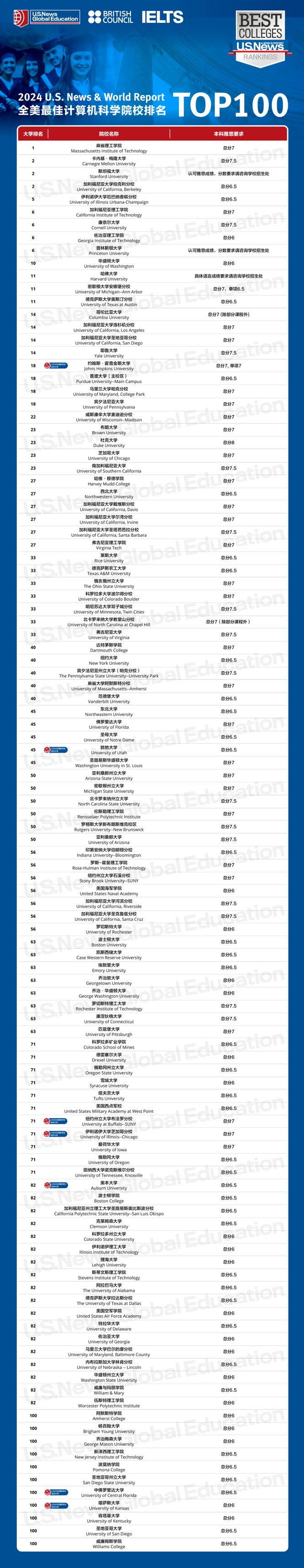 美国热门CS计算机专业可以选择哪些名校2024USNews排名参考