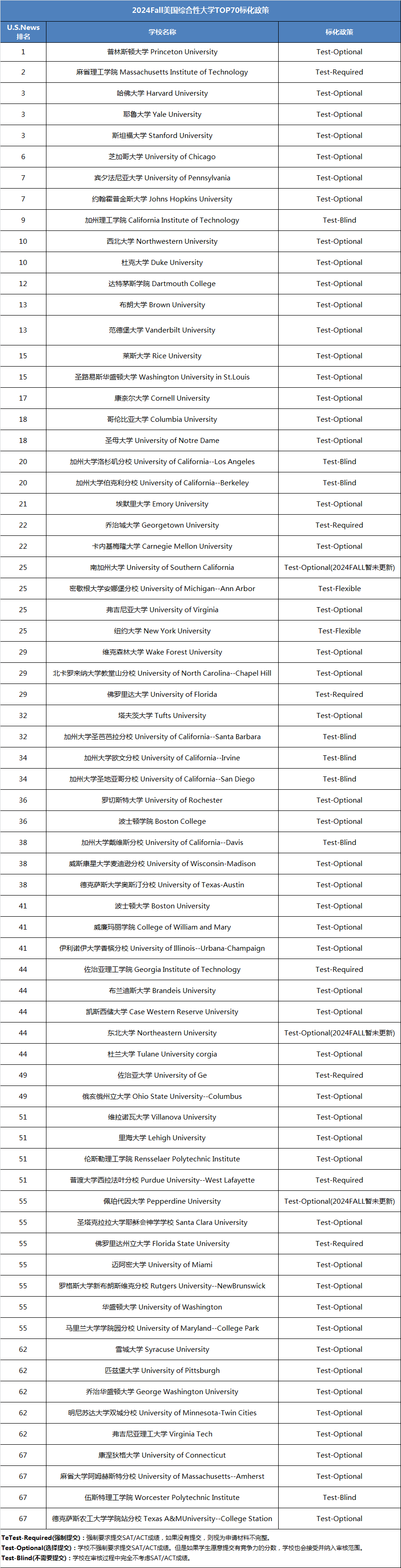 美国院校除了发布早申截止日期外,还公布了最新的早申政策。截止到目前,共出现四类关于标化成绩的要求,分别是: