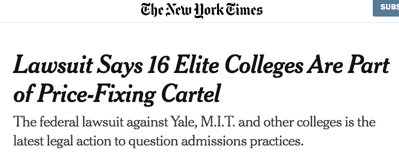 他们将568校长集团告上法庭,指控他们“偏袒富裕申请者、削减了助学金,甚至向超过17万名助学金获得者多收了数亿美元的费用!”