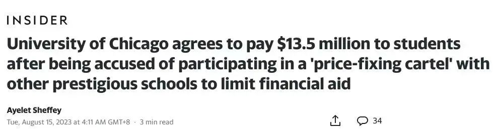 本月,芝加哥大学率先同意了1350万美元的和解协议。原告律师认为,“这1350万美元是一笔巨款…将有助于补偿原告所受的伤害,阻止原告所指控的不当行为,并使其余被告能够进一步补偿其校友和在校学生所受的伤害。”